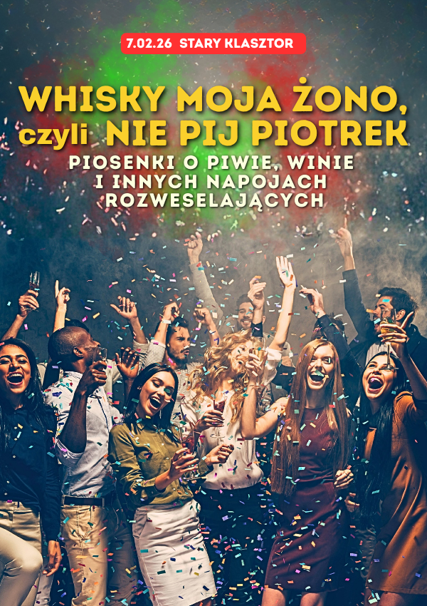 "Nie pij, Piotrek, nie pij w piątek, piątek zły jest na początek..." - zgodnie z tą dewizą zespołu Elektryczne Gitary zapraszamy do Starego Klasztoru w SOBOTĘ 7 lutego na karnawałowy koncert, w którym zagramy i wspólnie zaśpiewamy najpopularniejsze polskie i zagraniczne piosenki o piwie, winie i innych napojach rozweselających.